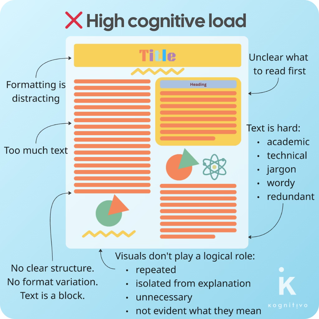 Think learning is about absorbing lots of information? Think again. Cognitive load is the sneaky culprit behind overwhelm and shallow learning. It explains why your old school textbook was so bad!