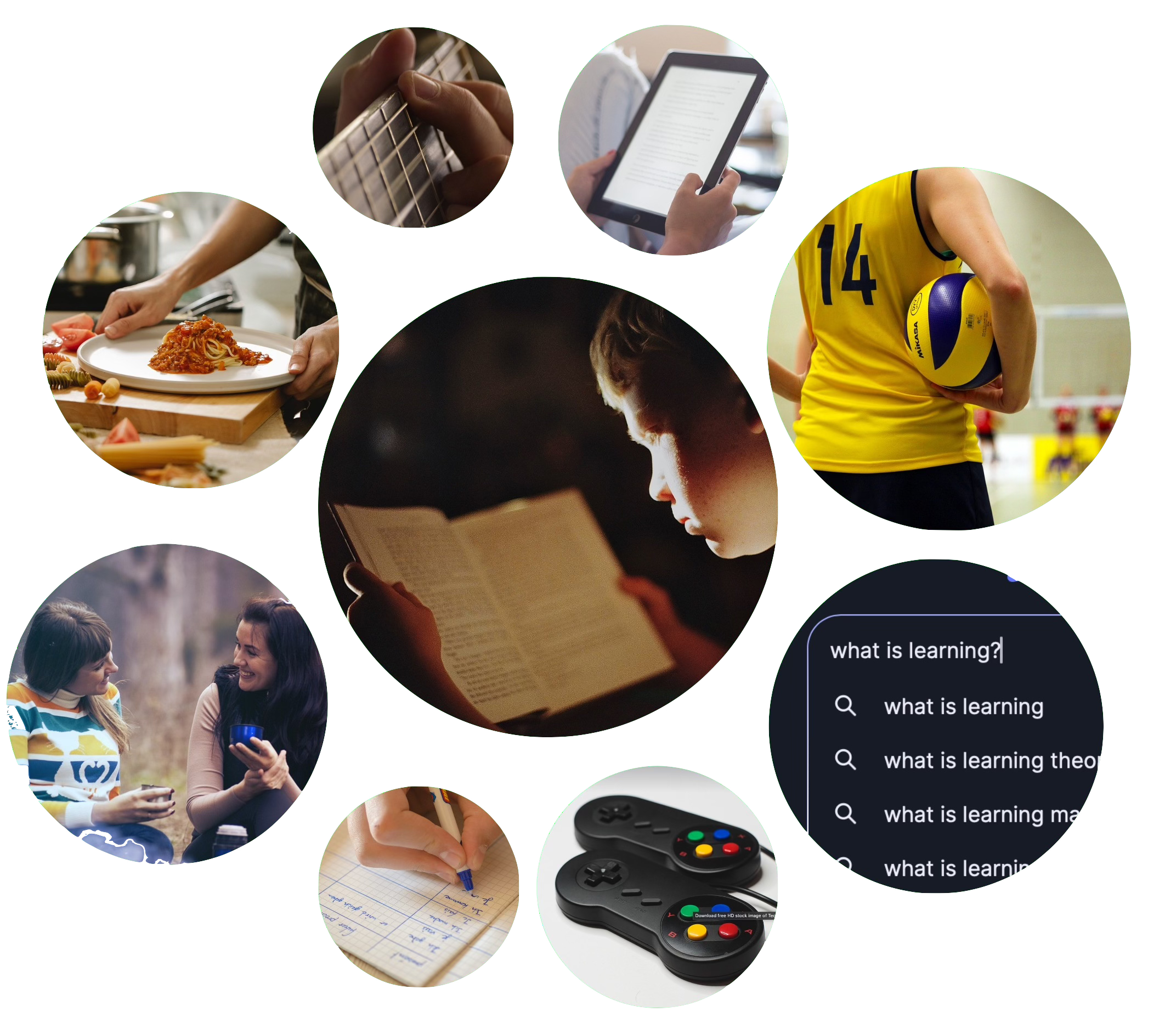 How to learn? Exactly, as in "learning". In general: not just what teenagers do in school, but also what you do when you cook a new recipe, when you’re figuring out how things work at a new company, when you untangle spicy gossip in a conversation (if only your brain had been that active during history class!), when you try new moves in your favorite sport, when you’re reading a novel and track the drama between the characters, when you ask the AI a nerdy question, when you're figuring out a new video game, when you’re starting to play a new instrument or when you’re saying your first words in a foreign language.