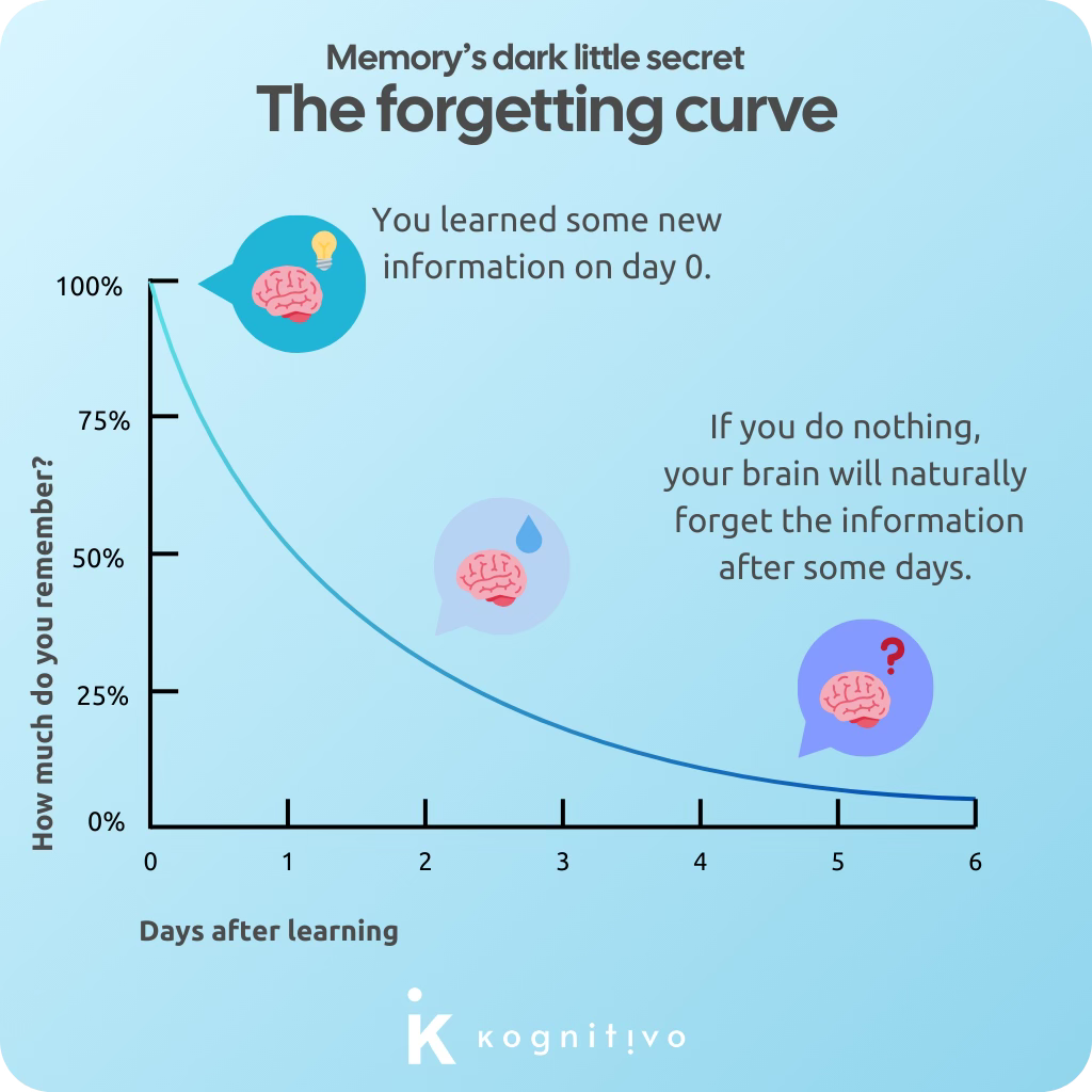 To answer that, imagine memory loss as a curve. Not a gentle slope, but a cliff. You learn something today. Tomorrow, half of it is gone. By the weekend, you're lucky if you even remember what it was about.
